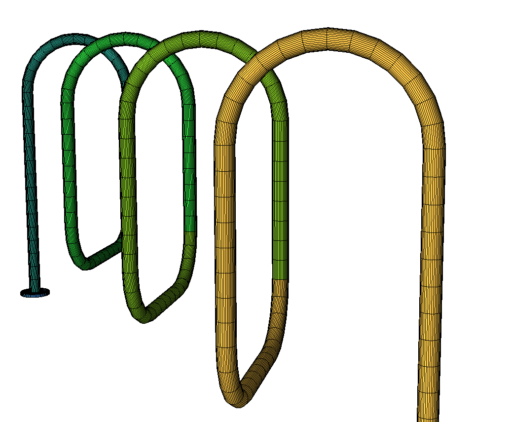 Extrusion meshing generates a structured mesh along the extrusion direction on the given model entity. It can be combined with other meshing capabilities, such as boundary layers and mesh matching.