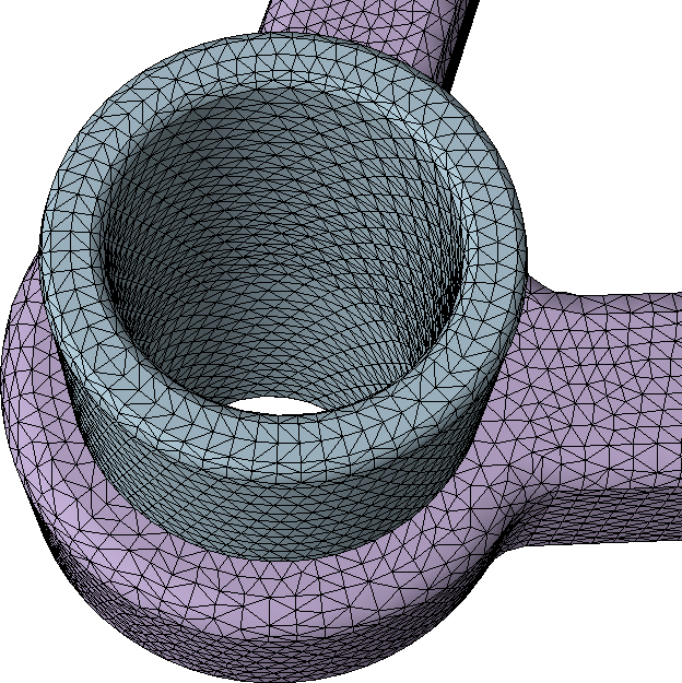After the subtraction, the interior region is removed, and the assembly is meshed.