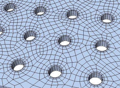 In the example below, boundary layers are specified on the holes to align the mesh with the holes and give precise control of the mesh size.